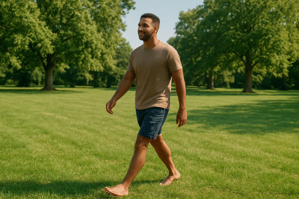 - Caminhe descalço na grama – Sinta a energia da terra e respire fundo.